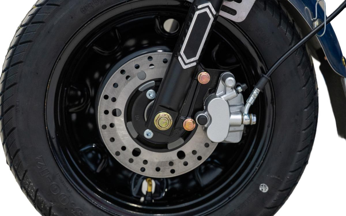 Sistemul de propulsie electric functioneaza la 72 V, fiind alimentat de un acumulator cu capacitate de 20 Ah, cu autonomie de pana la 50 km. Sasiul este conceput pentru o capacitate de incarcare de pana la 500 kg, iar diferenta de dimensiune intre anvelopele fata si spate contribuie la stabilitate si aderenta sporita in timpul transportului. Sistemul de franare combinat, disc pe fata si tambur pe spate, asigura control eficient la oprire, chiar si in conditii de sarcina ridicata.